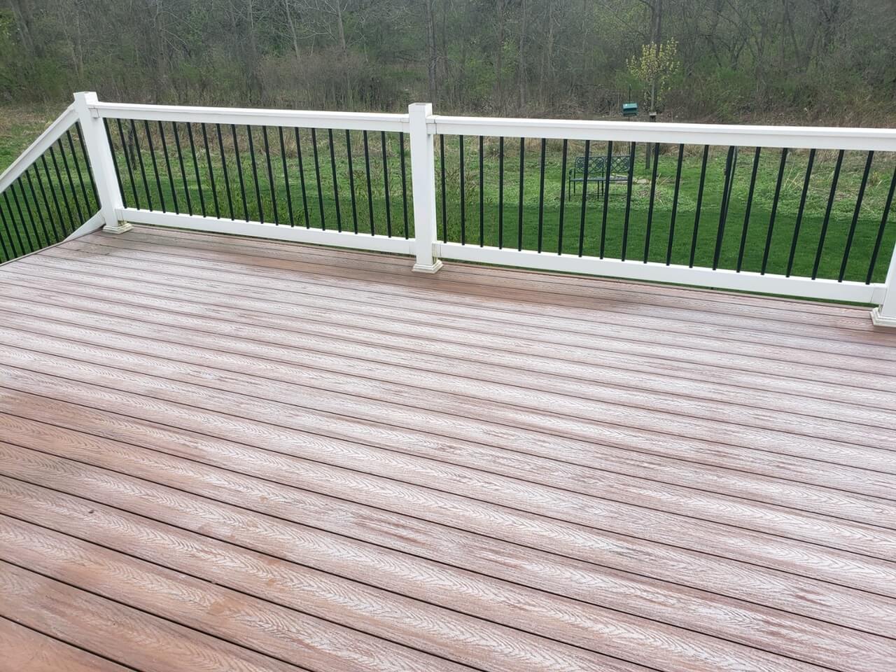 The Northfield, OH, homeowners whose deck you see pictured here purchased a home with a deck already installed by the builder. Because it was made with composite decking, they would naturally have assumed its color would last. They were surprised and extremely disappointed when the color on their composite deck faded tremendously.