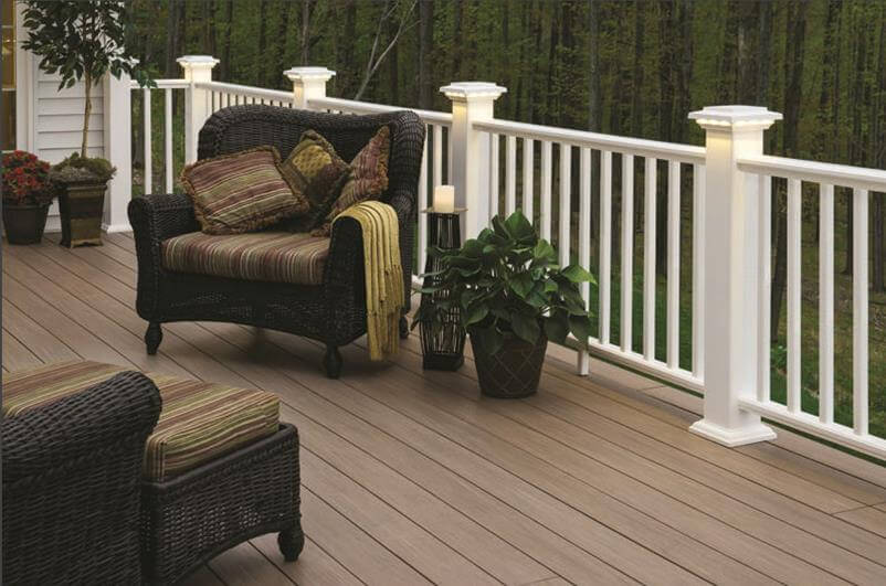 Suppose you’ve decided on a low-maintenance deck but are having trouble choosing the color you want for your composite decking boards. Even after you’ve signed a contract and we’ve placed your project in our construction schedule, you may have more time to think about colors. When it becomes time to order your materials, we schedule a pre-construction meeting where you can finalize your selections of color and railing style.
