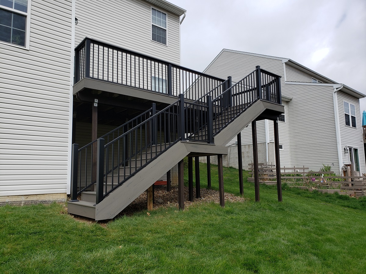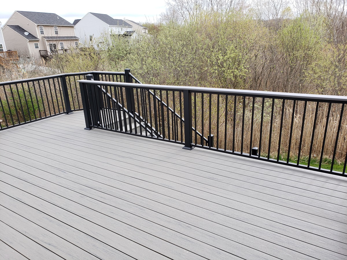 For this reason, we often recommend low-maintenance re-decking materials that are sustainable and are made from dependable composite materials, such as TimberTech Silver Maple, seen here in this Kent, Ohio, backyard.