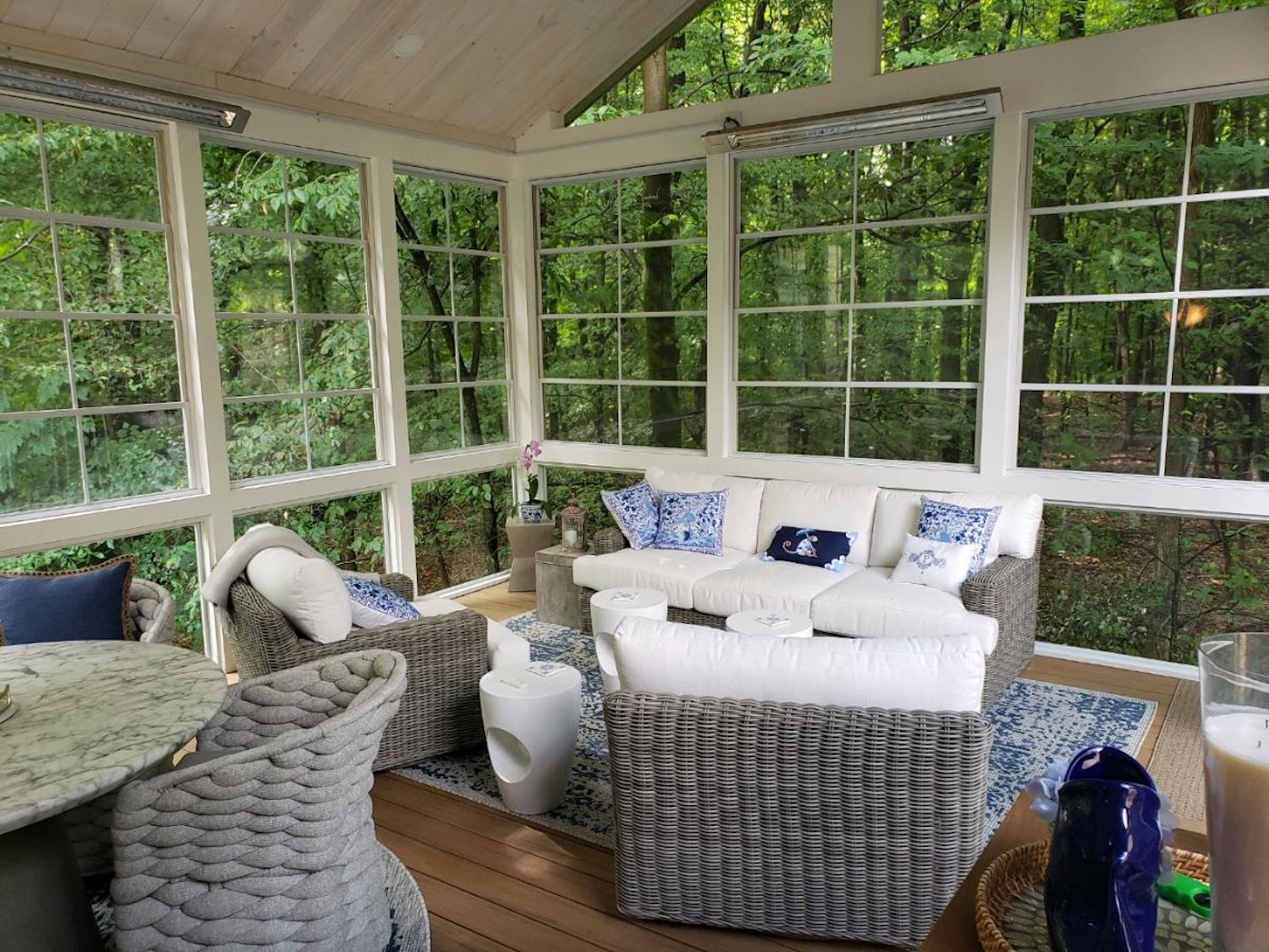 We use the SCREENEZE system in many of our 3-season porches. It combines the benefits of a screened-in space with the option to add retractable windows over time. That means you can start with screens now and add vinyl inserts later, creating a flexible room you can enjoy well into the colder months.