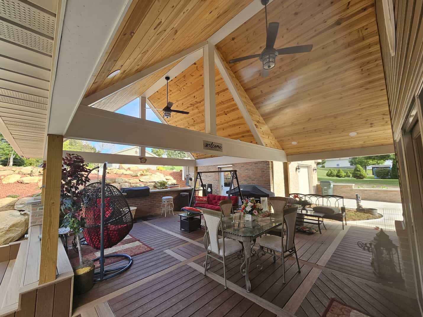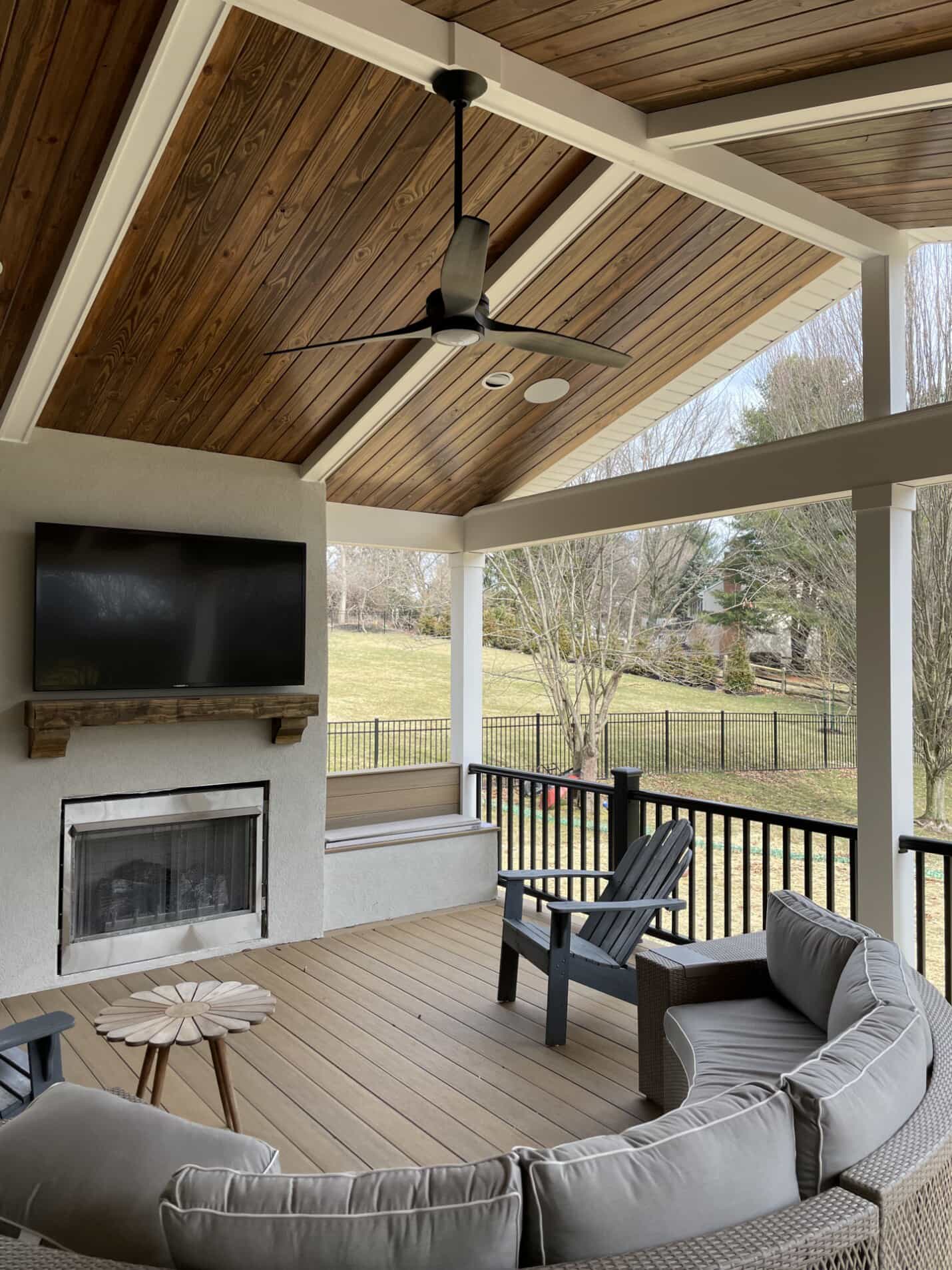 These spaces work for game days, movie nights, and holidays alike. It’s a great way for skilled Akron porch contractors to make covered porches feel like second living rooms.