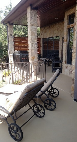 Archadeck of Austin designed a patio extension that follows the lines and curves of the home. The larger patio now provides the room these homeowners need to fully enjoy their outdoor living space. Part of the extension is sheltered by the original roof, and part of it receives full sunlight. Now the family will have a choice when it comes to enjoying the sun’s warming rays on cooler days or protecting themselves from too much sun in the heat of summer.