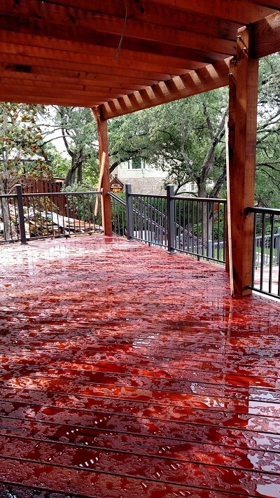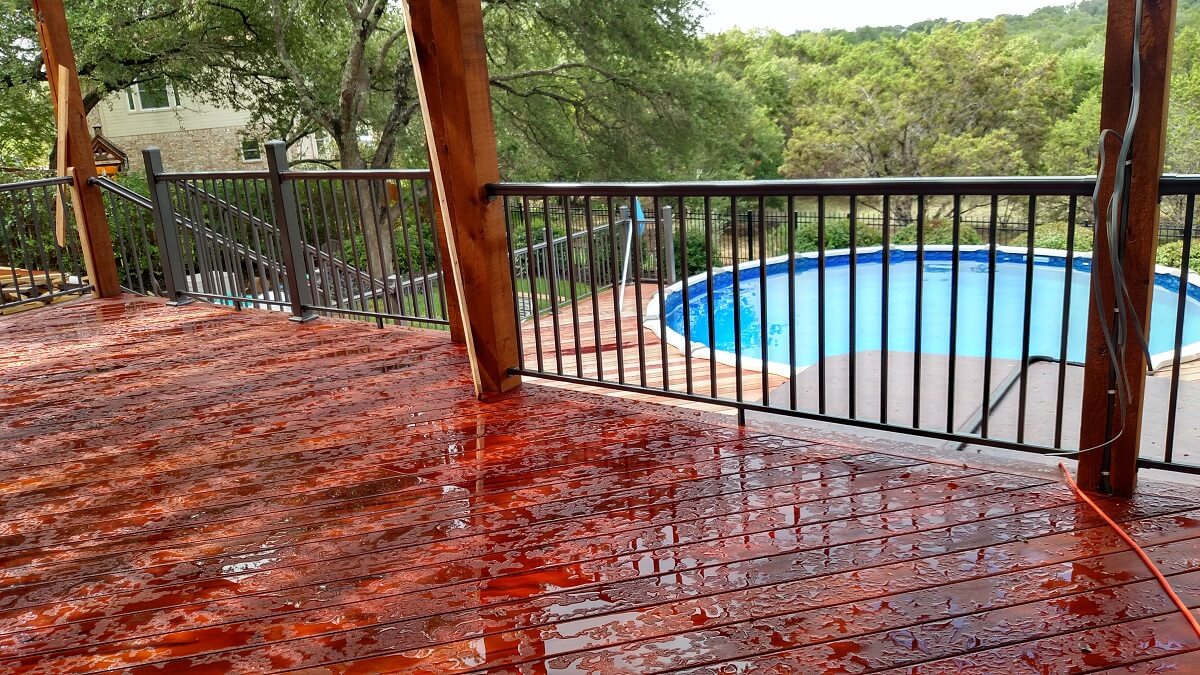 Archadeck of Austin designed the new deck to include plenty of outdoor living space AND out-of-sight storage space, too. The new deck includes a pergola and an outdoor kitchen – and also works in unison with the family’s new pool. They can cook, eat, swim and relax outdoors.