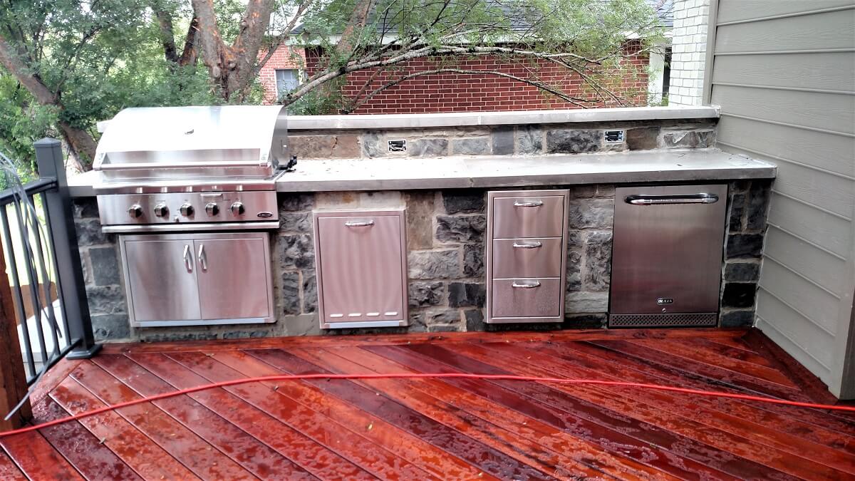 We built the outdoor kitchen with silver mist chopped stone, another beautiful material included in this project. The homeowners’ selection of materials was top shelf throughout. These fine materials combined with Archadeck of Austin’s functional and beautiful deck design resulted in a spectacular outdoor living project.
