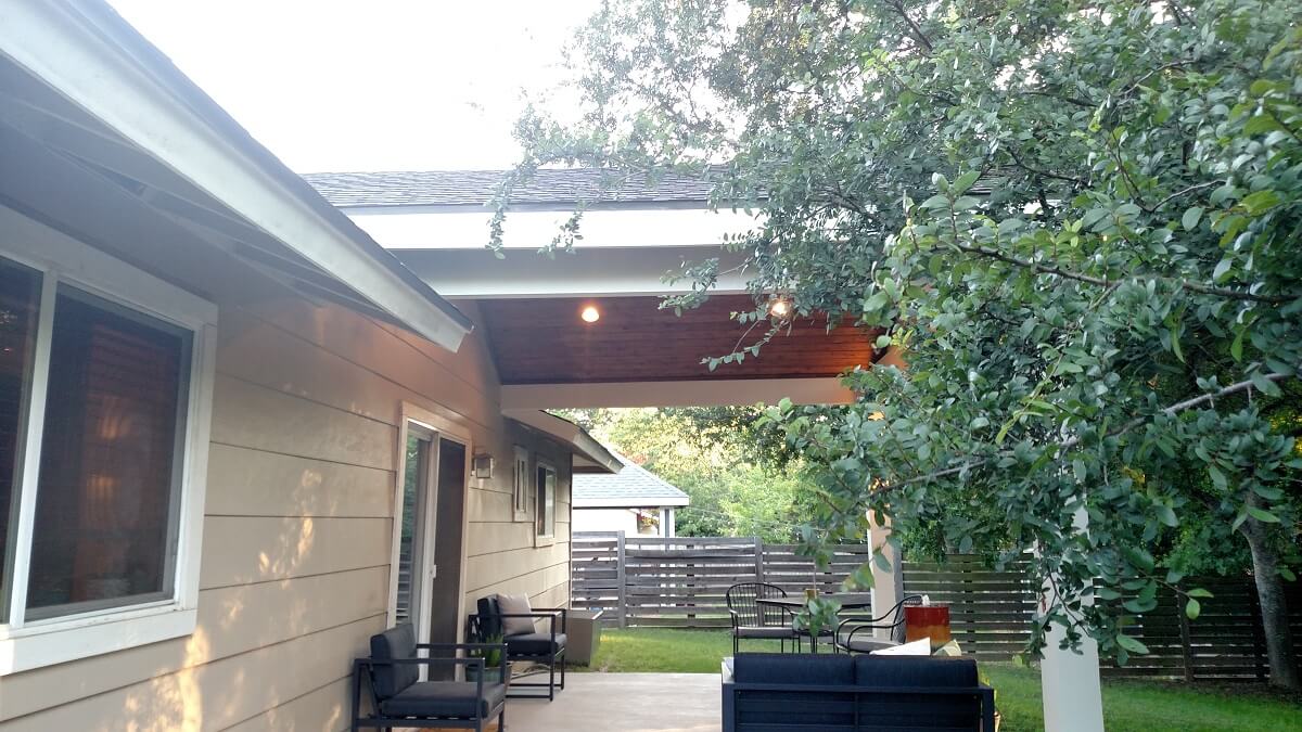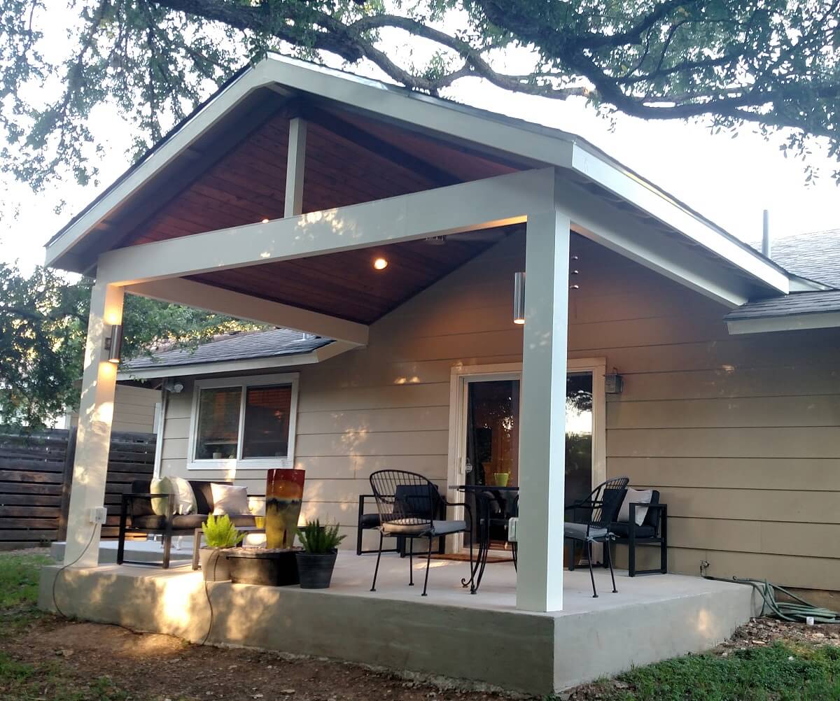 Now the homeowner has a shaded patio to enjoy in the daytime and better lighting outdoors at night. We’re guessing this covered patio will see a lot more use than the original one did.