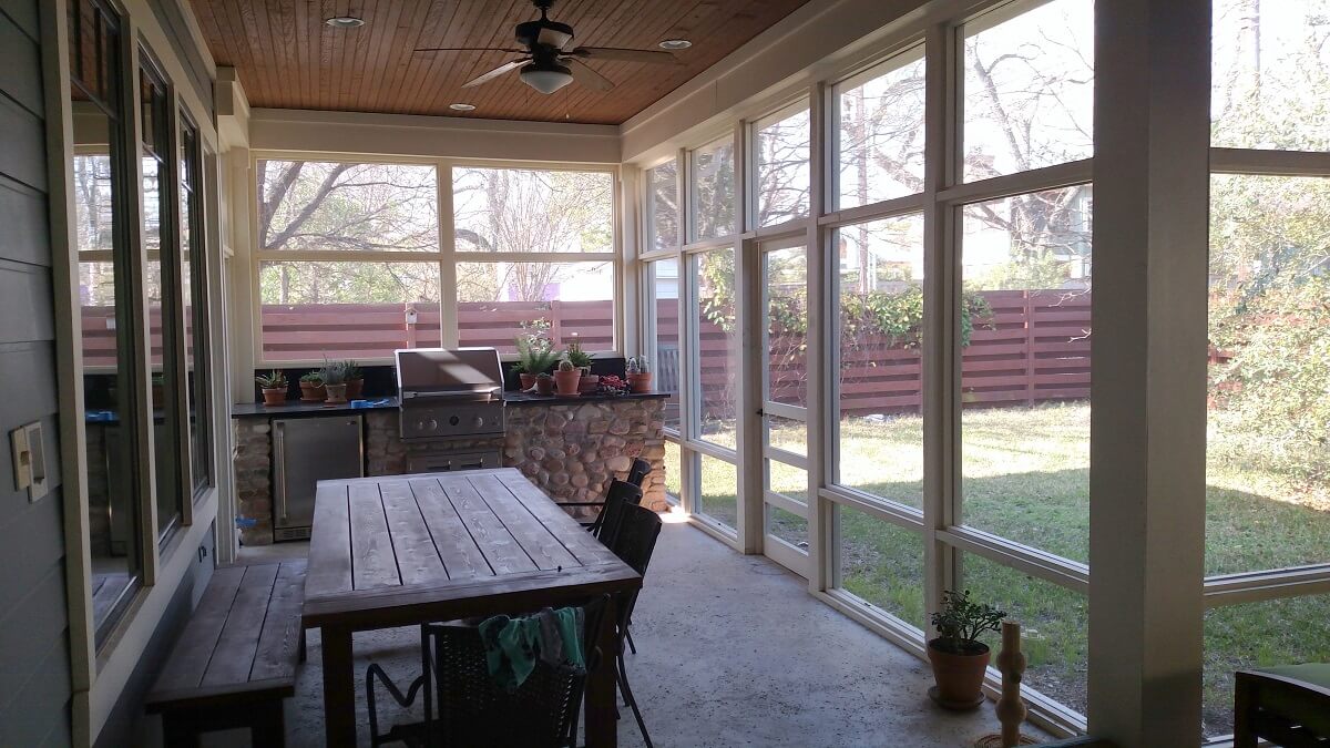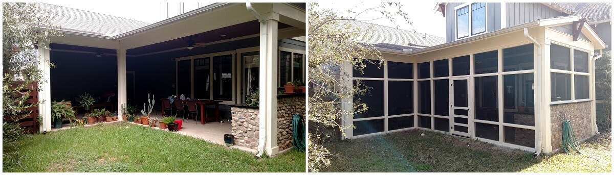 Our clients are already enjoying their newly screened room. They have the same view of the outdoors and they can still feel the warm air and cool breezes, but they no longer have to contend with uninvited flying insects. Finally, they can relax and enjoy meals prepared using their outdoor kitchen.