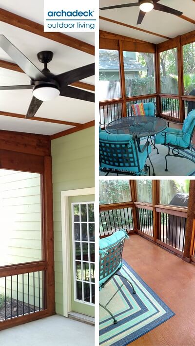 These homeowners were renovating quite a few aspects of this older home, and adding a screened porch was high on their list. Their back yard stays moist so mosquitoes were a constant problem. Their budget was a consideration, so Austin porch builder Archadeck of Austin worked with them to design a porch that met their needs and stayed within budget.