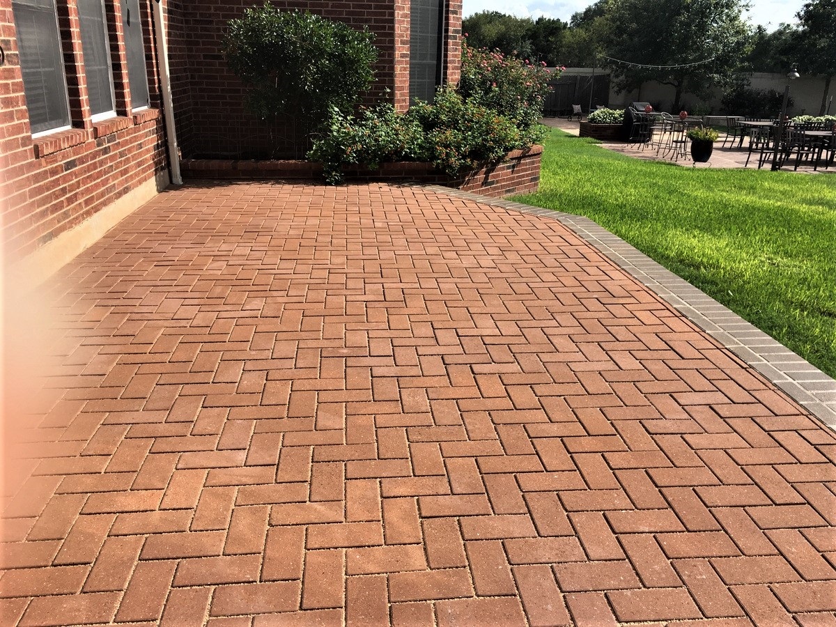 These Circle C Ranch homeowners love the beauty of their new herringbone patio. They also love the fact that they found just the right patio builder, Archadeck of Austin, to design and build their permeable patio.