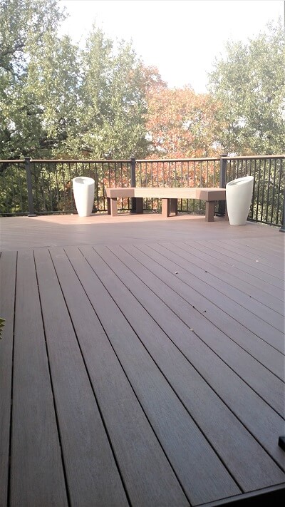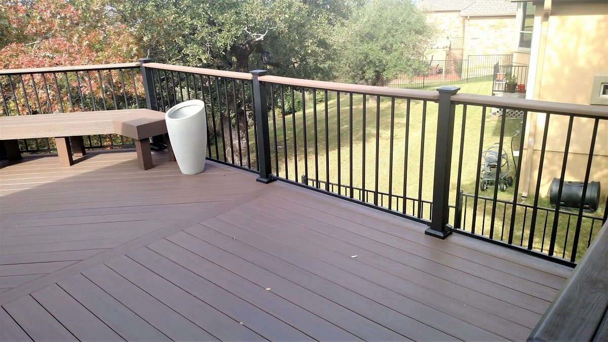 — AZEK provides low-maintenance deck, bench, and railing top cap finishes for this NW Austin deck.