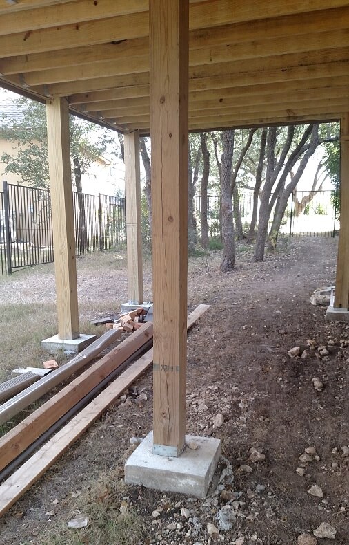 — Sturdy 6″×6″ support posts anchored to concrete piers.