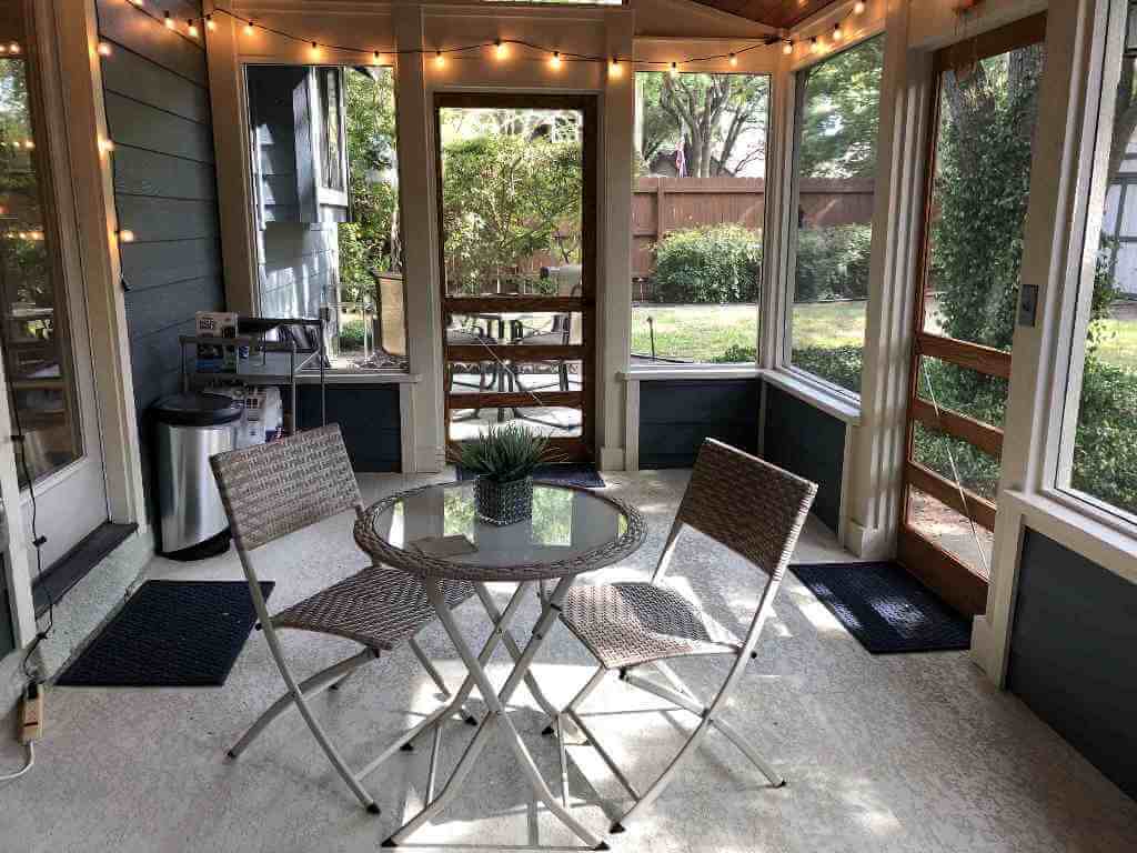 Mosquitoes were the homeowners’ biggest source of agony when they tried to relax outdoors on their patio. The size of the patio was sufficient, so they knew it would give them enough room for a screened porch. All they needed was a roof and some framing to hold up the screens. And then they needed the screens.