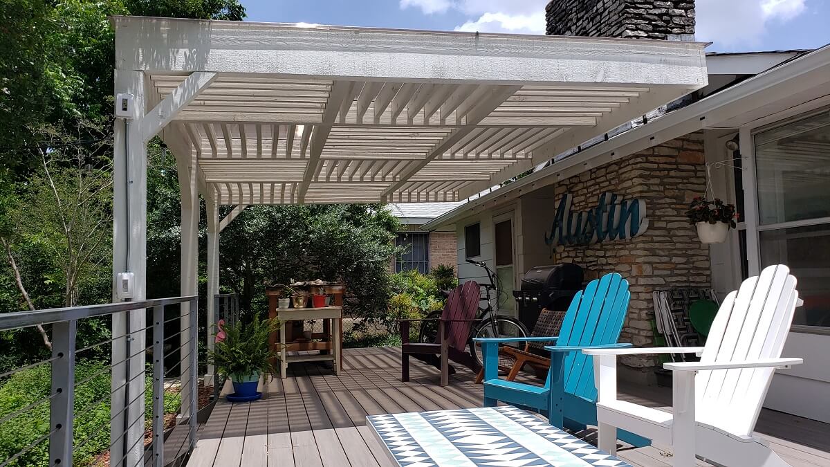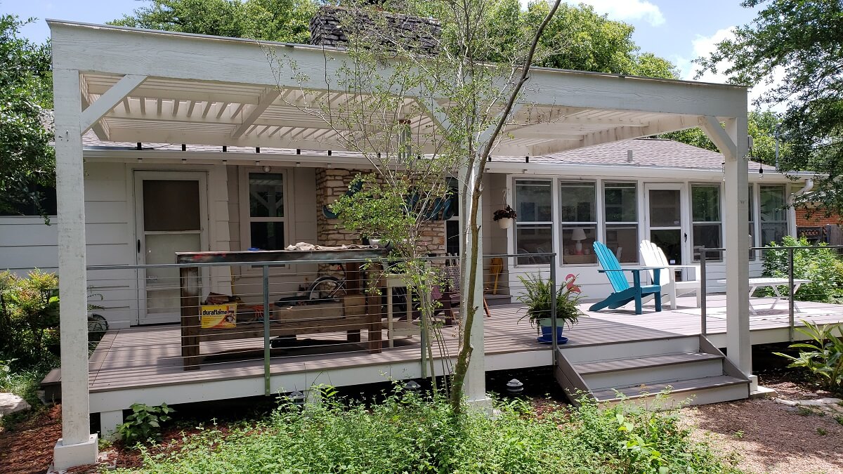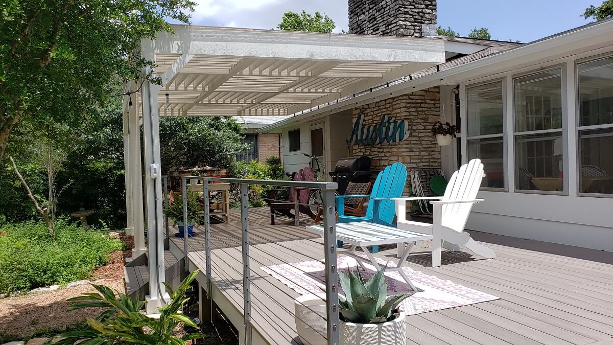 Covering only half the deck meant that in order to set posts up, we needed to create a design that was deeper than the deck itself. To put this another way, the pergola needed to extend beyond the deck perimeter. If we were building a deck and a pergola together, at the same time, such a feat wouldn’t have been necessary. But it was. Archadeck of Austin was able to engineer a design that worked perfectly!
