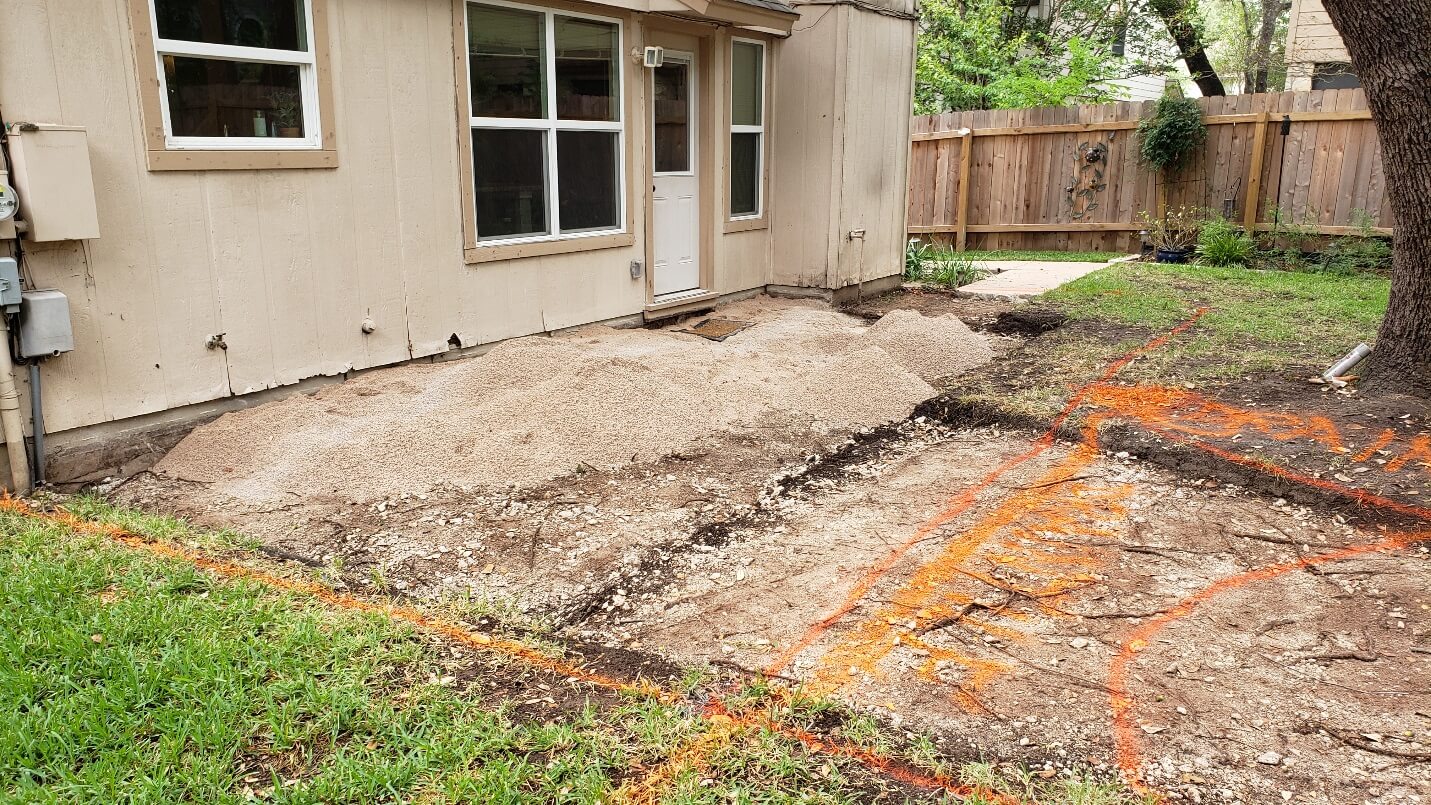 Each of our projects presents its own set of challenges, and this Northwest Austin project was no exception. The previous concrete patio was being lifted by this mature tree’s root structure, and water was not properly draining from the space. These two things create an unsafe backyard scenario with trip and fall hazards. The home is also located within a two-mile EJC, Extraterritorial Jurisdiction for Planning and Development zone.