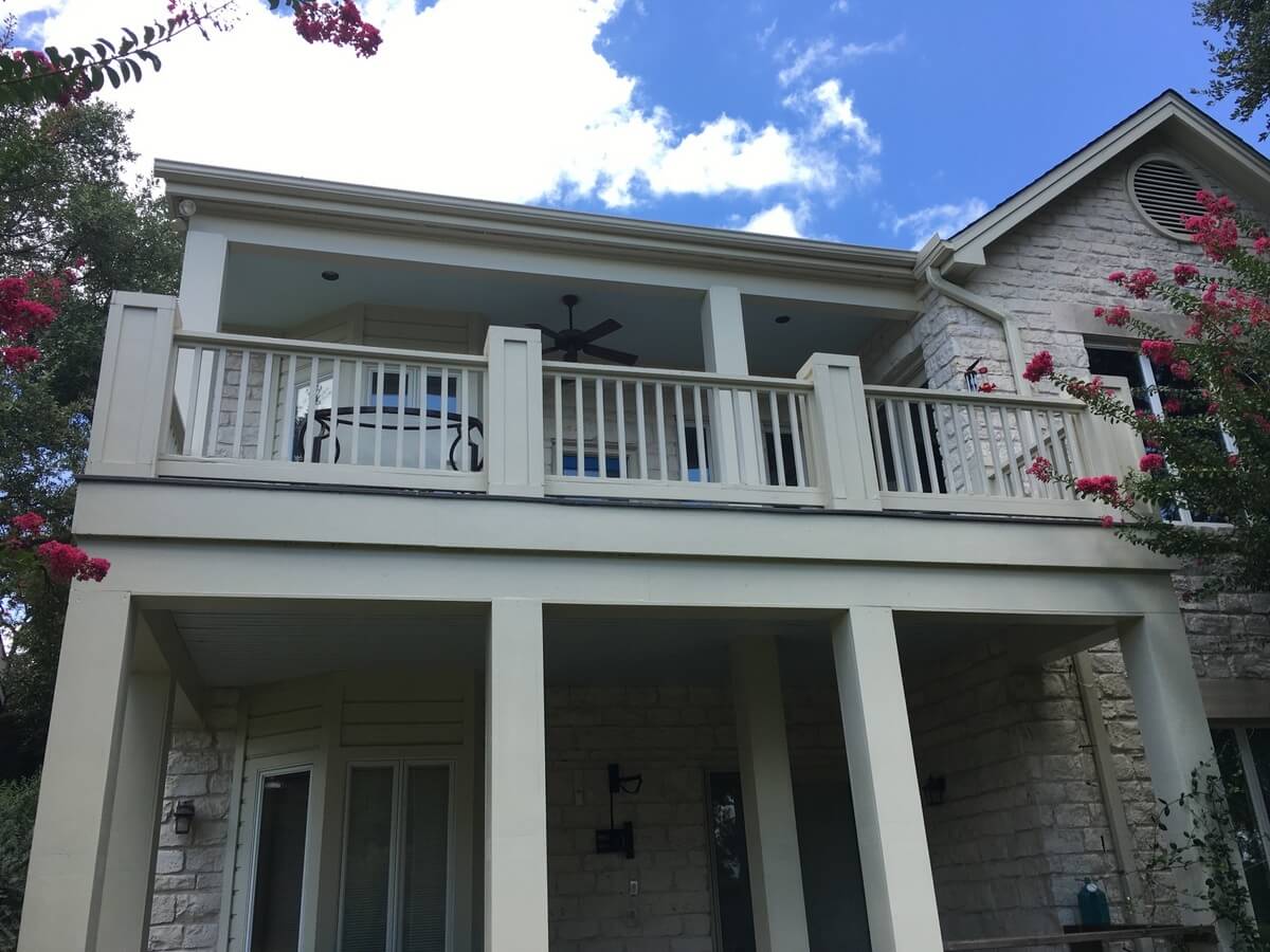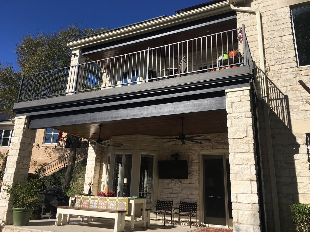 Archadeck of Austin removed the existing upper deck, and installed engineered beams to open up the span, eliminating view-impeding columns. We installed a bitumen-style roof, placed a new deck on top, and rebuilt beautiful limestone columns top-to-bottom.