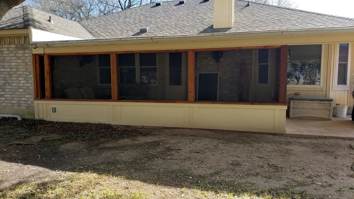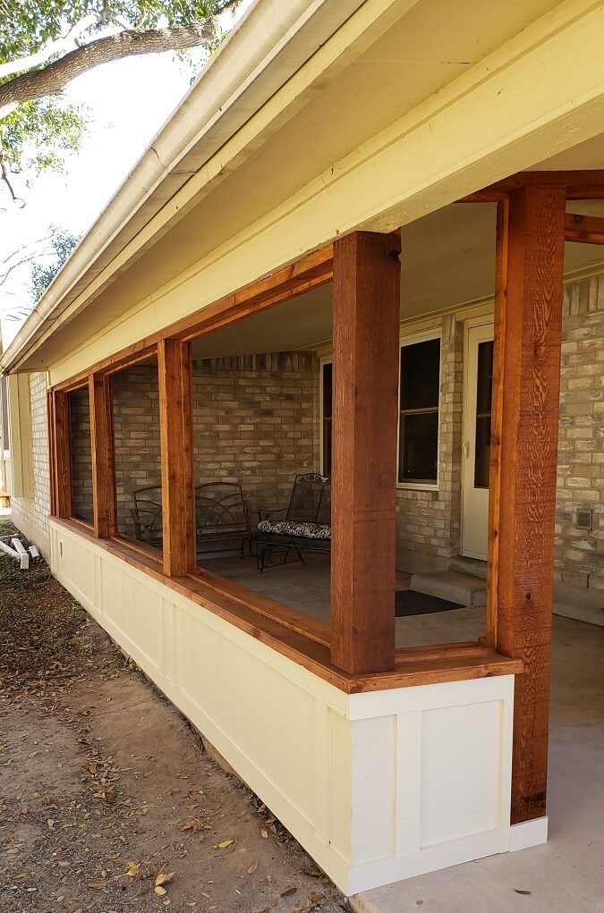 These clients in Pflugerville, TX, had been enjoying their covered porch for years. Finally tired of battling those pesky mosquitoes, they decided to have their covered back porch converted to a screened porch. They called Austin porch builder Archadeck of Austin to accomplish this task. Here’s what they didn’t know: because of the way their porch cover was attached, conversion to a conventional screened porch was not an option.
