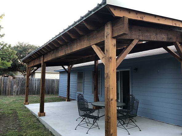 The home had an existing concrete patio at the back door, and the homeowners felt like it was a good size for them. What they needed, however, was a structure to provide shade over the patio. Without a cover of some sort, a pergola can provide some shade, but not total shade. By choosing to add a covered pergola, the homeowners not only have shade, they have an outdoor living space protected from rain as well. The custom pergola that Archadeck of Austin designed and built here will give these homeowners many more “patio days” to enjoy each year!