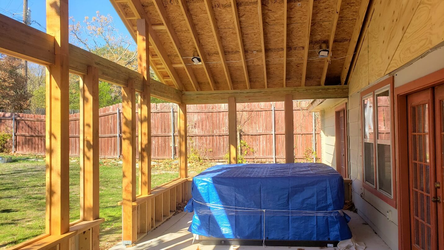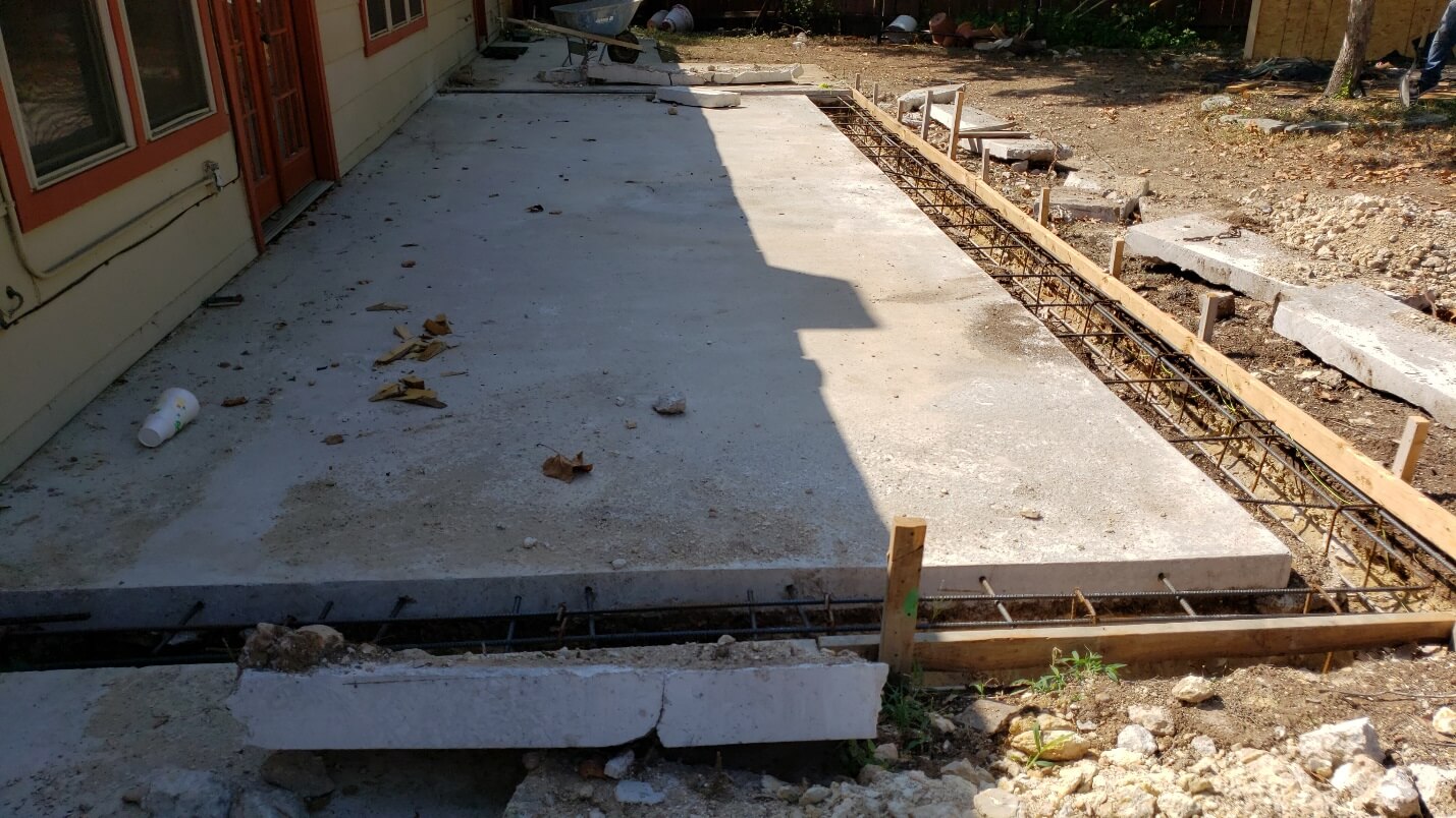 The consensus said, This porch must go, and Archadeck of Austin agreed! We demolished every iota of the old roof structure. We were able to reuse the existing concrete pad, but first had to install a new footer system to bring it up to code. One of the benefits of hiring us to be your porch builder, is that you will be assured that your new porch or deck meets all necessary building codes.