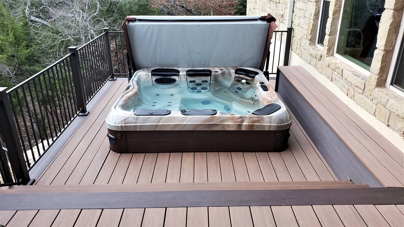 For these Leander homeowners, their new deck would not have been complete without a dream spa deck. This deck was thoughtfully planned for space in which we had to build and creates a perfect escape for these clients and their guests.