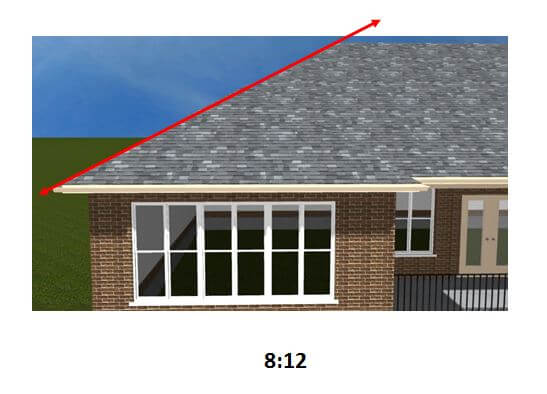 - On roof projects, it’s important to know the slope of the current roof. The slope is measured by how far up the roof goes over a 12 ft horizontal distance. We suggest printing this, stand in the yard and hold it up to tell which one is most like the slop of your roof.