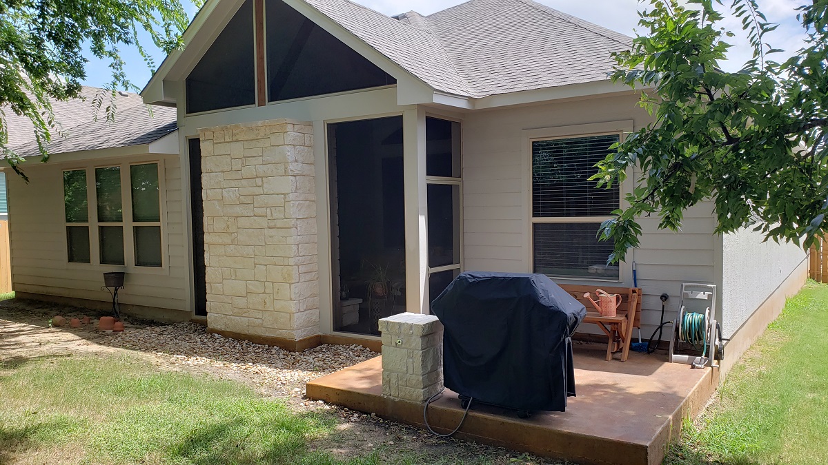 How much covered outdoor space is (or would be) enough for you? This Georgetown TX homeowner had a small covered patio at the back of the home. It wasn't very enjoyable because it just didn't offer much protected space. She needed more shade and more room where she could relax outdoors. The original covered patio was only about 10’ deep, somewhat cramped for an outdoor room.