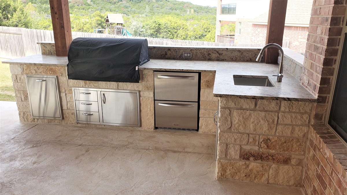The project featured here is proof that if you have a complex outdoor living project in mind, you’d better have Archadeck of Austin do the work. This Steiner Ranch extended porch cover and outdoor kitchen installation was unusually complicated for a couple of reasons. A less experienced builder could have easily botched the job. Archadeck of Austin took the time and made the extra effort to do it right, no shortcuts. The homeowners are quite pleased with the results and will never have to worry about what could have gone wrong.