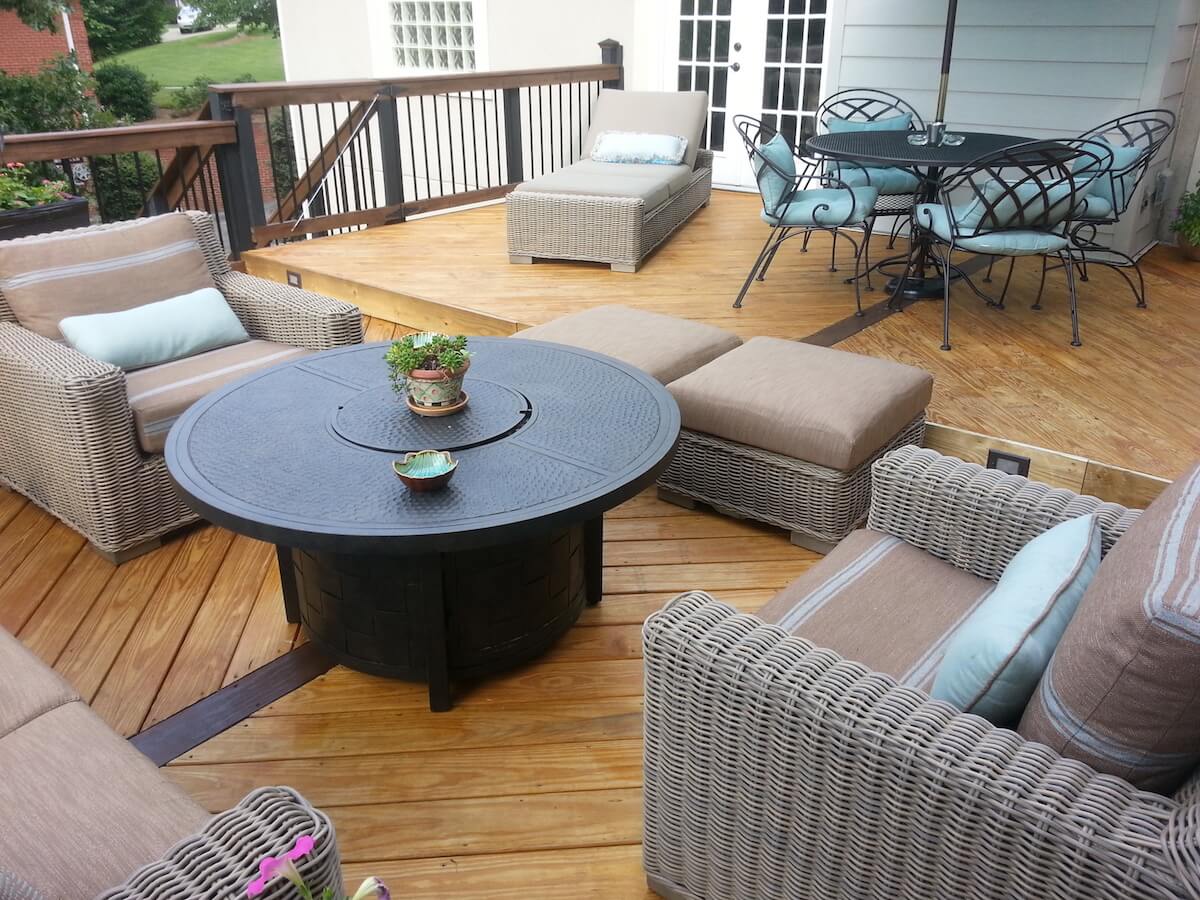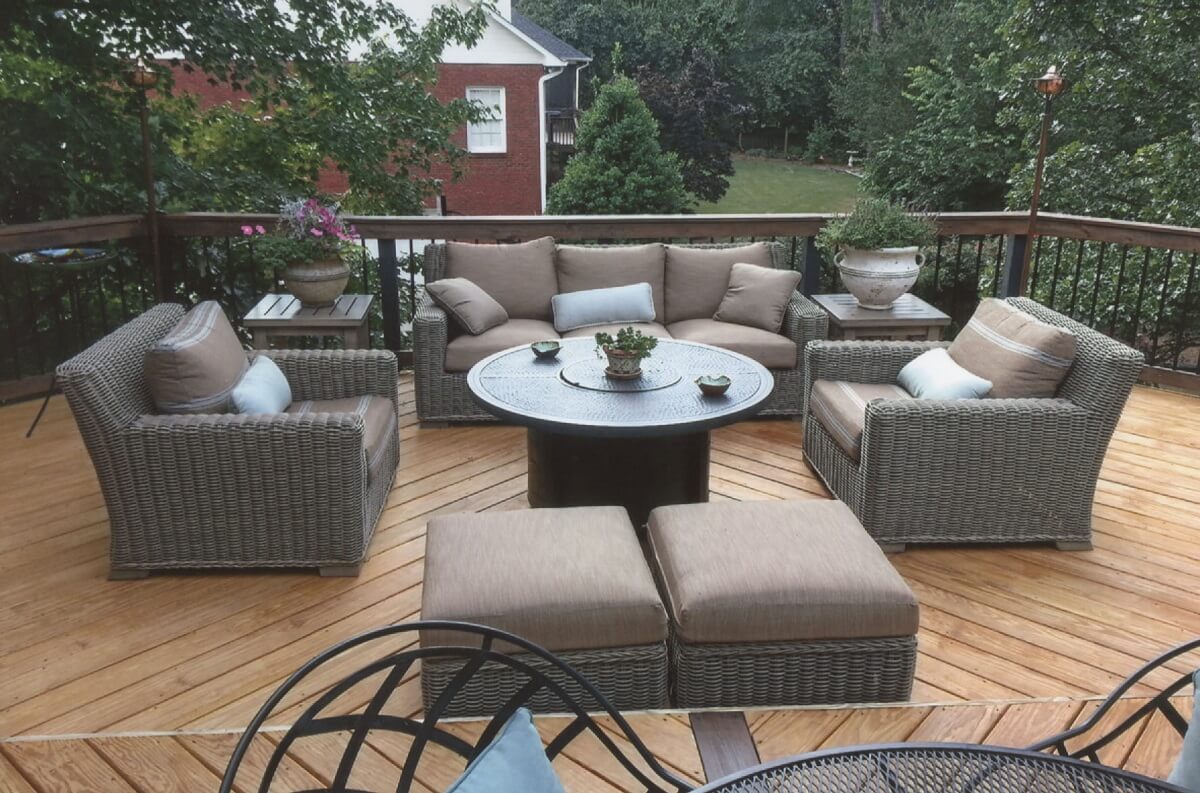 When determining your ideal deck size, we want to make sure you have enough room for the furnishings you want to use. Think of the dining room inside your home. Not only do you have sufficient room for a table and chairs, you also have room to pull chairs out and walk around them. Space requirements on the deck are no different.