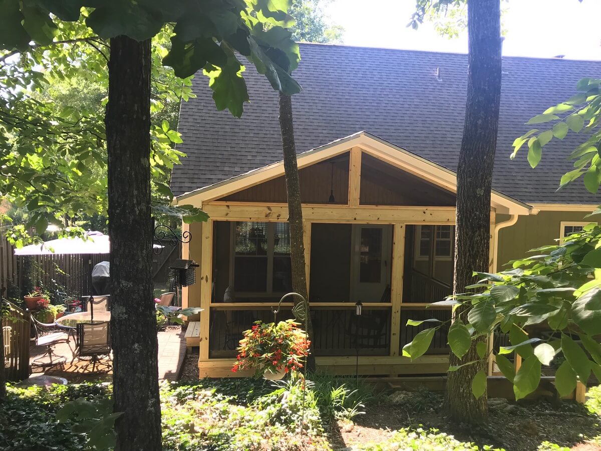 The adorable 12’x16’ screened porch is just the right size for these homeowners and is compatible with the size of their adjoining paver patio. A larger porch would have dwarfed the patio and might have made it seem too small.