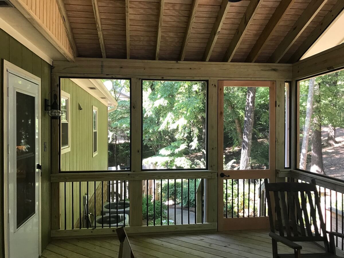 Doesn’t this new screened porch look right at home nestled in this wooded lot in Alabaster, AL? These Archadeck of Birmingham clients in Alabaster’s Portsouth neighborhood made an excellent choice to use pressure-treated pine for their new porch. We like the way this porch demonstrates how your choice of building materials can complement your home’s surroundings.