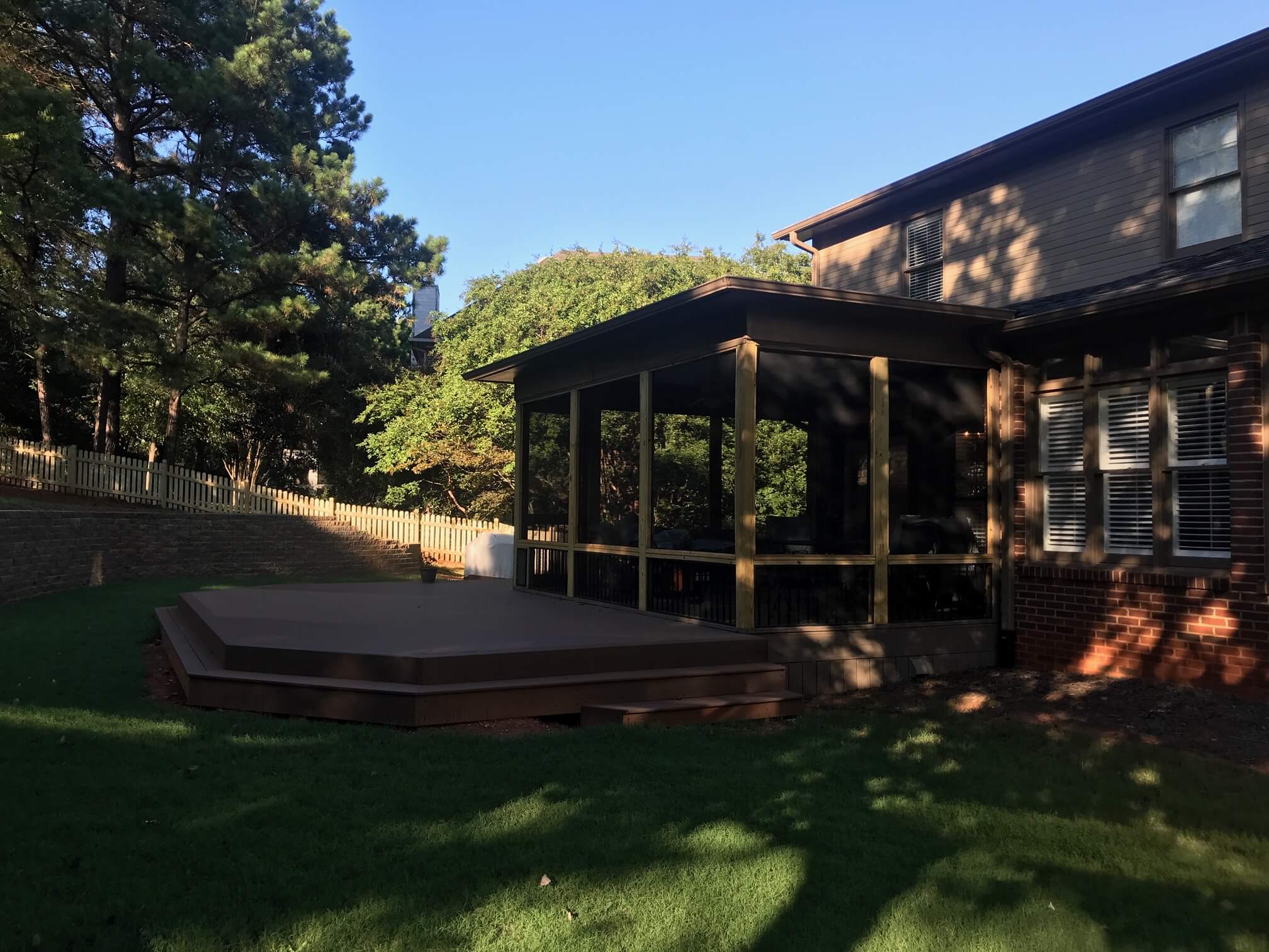 These homeowners had an existing porch in which they wanted to build out from to extend their outside living real estate. The kind of structure they had in mind for this project was the addition of a new low-maintenance deck. As part of the project, they also wanted to update and improve the porch they already had. As your local Screened porch and deck builders we were able to transpose their vision and ideas into a custom design. After finalizing the plan, Archadeck of Birmingham got to work on this new deck and improved porch project.
