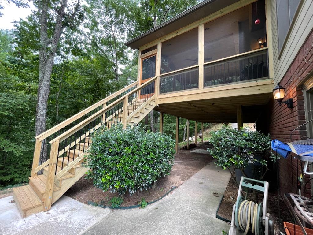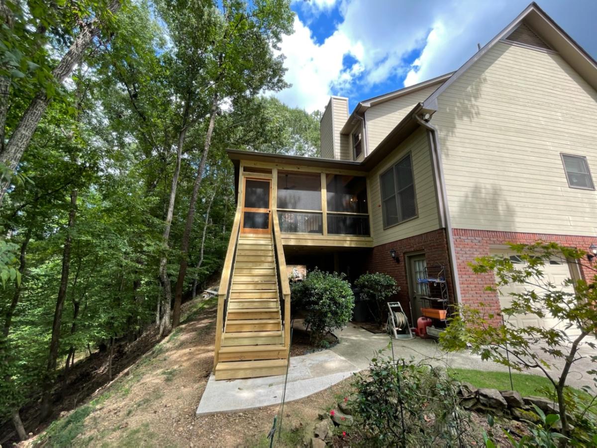 As we look back on it, we are so proud to be premier Hoover AL screened porch builder, who just designed and handcrafted this family outdoor deck turned oasis. If we didn’t know better, we would swear it belongs in a fancy tree top resort in some exotic location – not that Hoover isn’t exotic – (wink, wink).