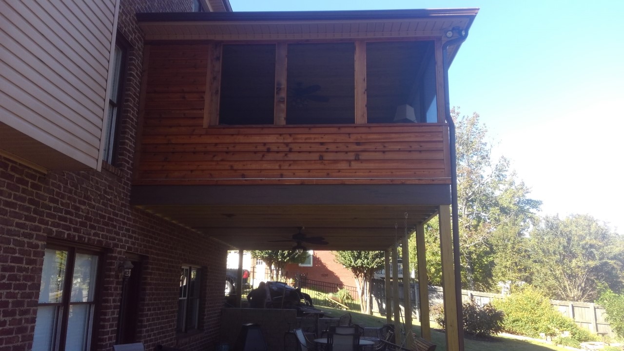 Our clients in the Carisbrooke neighborhood of Hoover, AL, wanted a screened porch. At the same time, they decided to have their deck extended with low maintenance decking. They also plan to have the screened porch converted to a sunroom or three-season room in the future. That’s an excellent way to plan ahead!