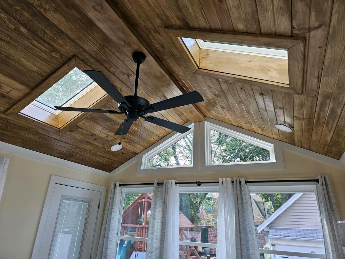 A porch patio permanent roof cover is often tied to the structure of the home – it is typically not freestanding. This allows recessed lighting, ceiling fans and heaters to be installed for greater useability and functionality.