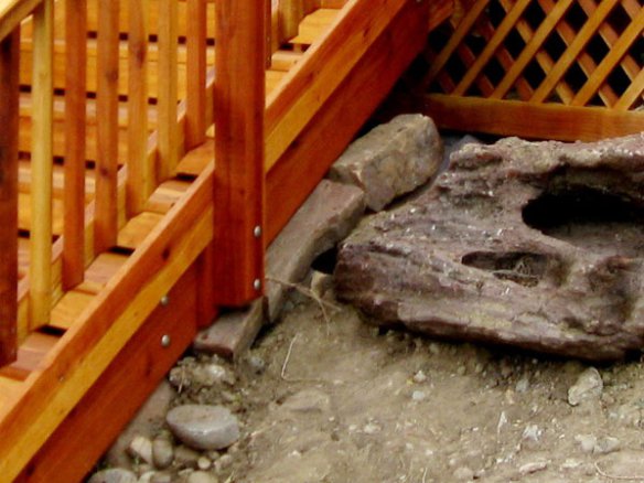 Creating the substructure and support required pouring concrete over some of the rocks to create a secure and solid footing for their new deck.