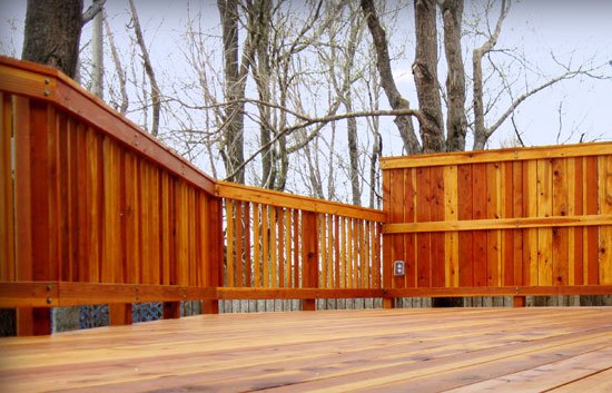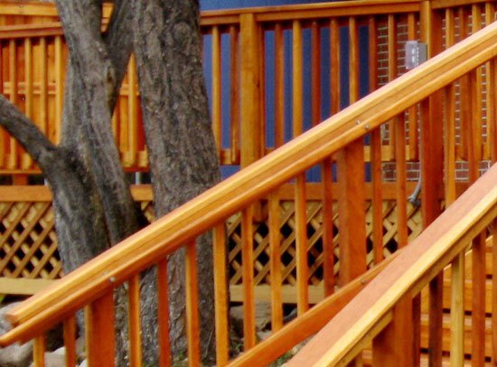 When Curtis and Ann Crays of Archadeck of Front Range Colorado designed this redwood deck in Wheat Ridge, they had a couple architectural challenges while working with the existing landscaping. The customer had an existing deck that they wanted removed and replaced with a new deck. They wanted the new deck to have privacy walls on both sides and they wanted to build over the rock landscaping to integrate the natural features of the rock and trees into the design of a new deck.