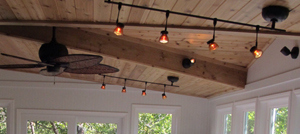 Steve suggested low-e double pane energy-efficient windows to maximize comfort and year round occupancy. Then for the design details, in order to give unique architectural look to the room, Steve suggested tongue and groove cedar ceiling trim with painted bead board wall trim.