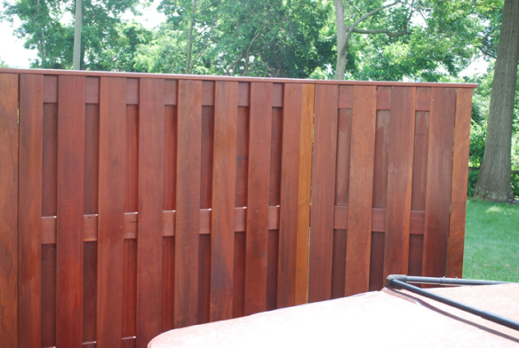 Made from a Brazilian hardwood to match the deck, the privacy screen below uses a shadow-box design.