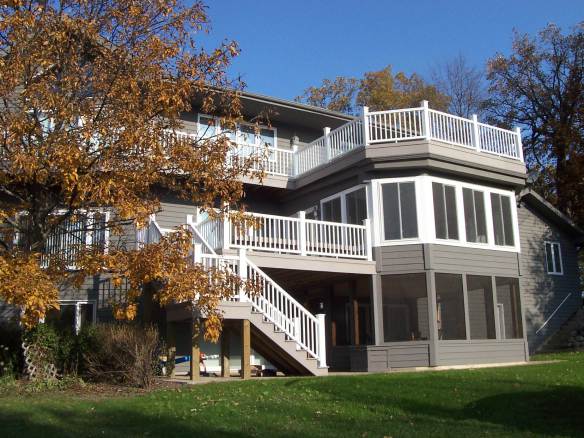 Elevated decks, although they can be more difficult to build, allow for some great design features that aren’t available for other decks. For instance, under decking creates dry, usable outdoor space underneath the tall structure. And porches or rooms can be added to the structure. Take a look at these great Archadeck elevated decks.