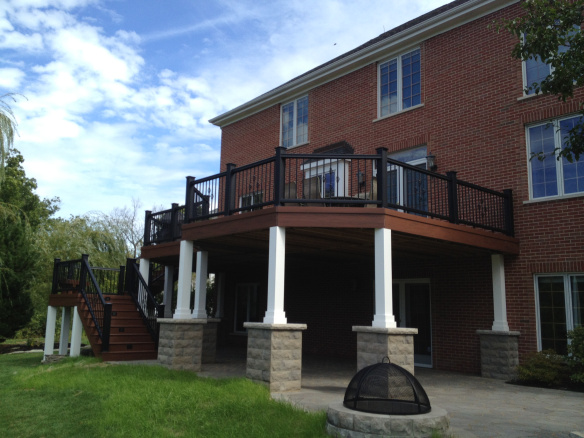 The first thing we look at is the skeleton of the deck. Elevated decks have to withstand a greater load so the footings are usually wider and set deeper into the ground. We also test the ground dirt to see how much it can bear and then use the required amount of cement at the base of the structure.