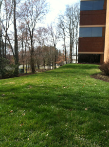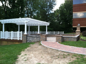 As you can see in the picture, the built-in benches have been added to the space. One of our goals in creating this outdoor living space at the office was to have a space that everyone in building would really use (not just look at). Seating is extremely important for regular use and with a commercial space that does get some traffic, the seating couldn’t be movable. While the retaining walls offer some seating, benches were added throughout the space to invite people to relax and take a seat.