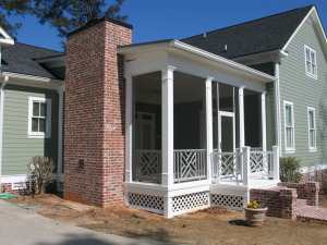 The owners of this Augusta, GA home wanted to replace an existing deck with a screened in porch. They felt they would use a screened porch more, especially if it could include a fireplace.