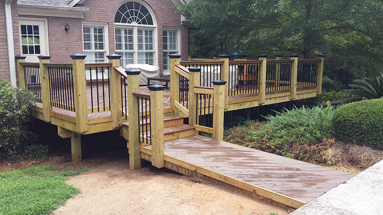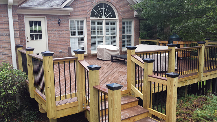 When we first met with these Macon GA homeowners, they knew they wanted a new deck to overlook their pool. They wanted a great space to fit a table and chairs as well as their Big Green Egg smoker. Looking with some foresight, they also knew they wanted to add to their current sunroom at some point in the future. They had a current deck but wanted to make sure this deck’s foundation could accommodate a roof in the future. In order to achieve that objective, we demolished the existing deck and built the substructure of the new deck to accommodate the additional weight of a roof for the future. Appreciating the importance of doing it right the first time, they were careful to evaluate their future growth plans and to share those plans with us. It is not all too uncommon for homeowners to know they want a porch in the future but also know it’s not in the current budget. Indeed the foundation is a bit different for a deck than it is for a roofed structure. It’s not much more expensive to build extra reinforcement into a deck substructure allowing yourself full flexibility for the future.