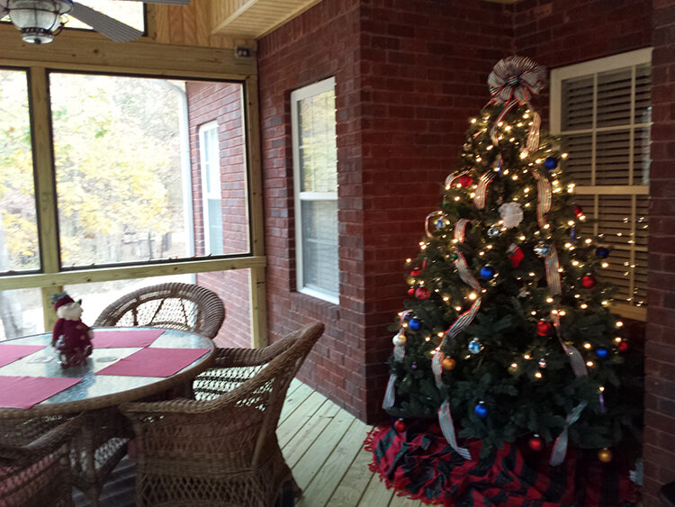 Speaking of the hot Georgia sun, there is a huge benefit to living in the warmer Southern United States. You may even be able to make some holiday memories outside on your new porch. Grab a couple small space heaters, turn on the fans to move the warmer air around, turn on some holiday music and enjoy the holiday on your new screened porch.