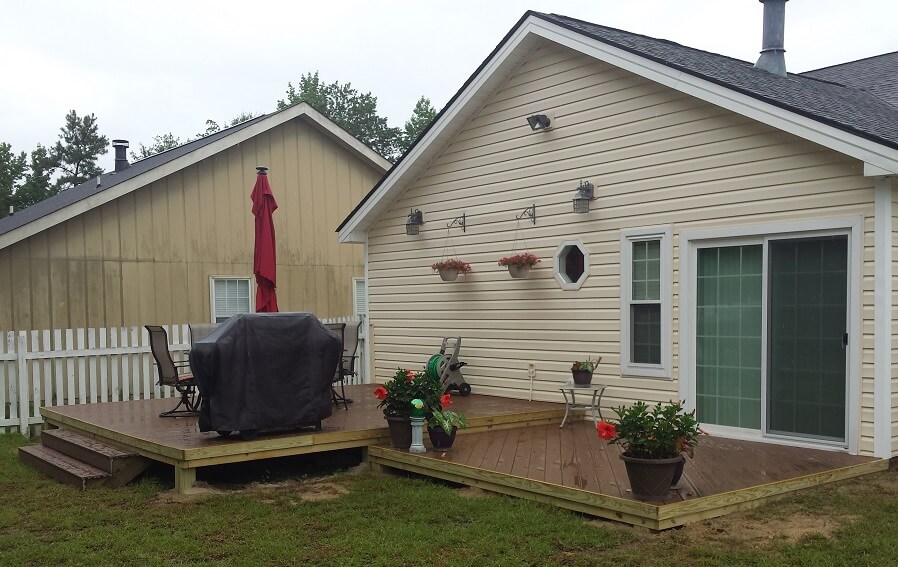 These Macon, GA, homeowners had a wooden deck that was built by the previous homeowner. When they contacted Archadeck of Central Georgia, they only expressed an interest in replacing the floor of the deck. After a careful inspection, we deemed the deck was built incorrectly. This meant that half the deck needed to be rebuilt in order to meet code and considered safe. We were able to save the remaining half through the installation of new beams and posts without the need for demolition.