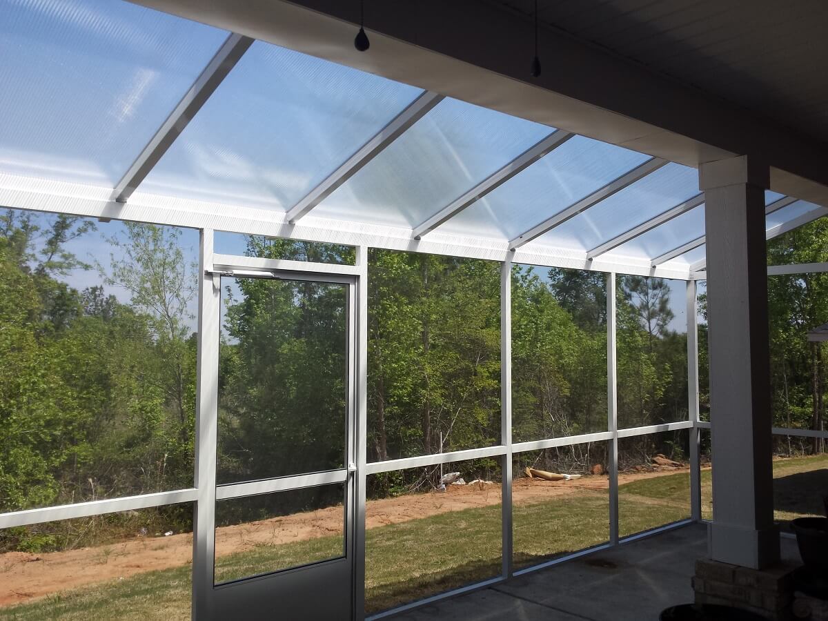 With this in mind, Archadeck of Central Georgia designed a screened patio that is reminiscent of a conservatory-style outdoor room. Instead of the traditional roof extension we use for most of our screened porch and patio designs, we used greenhouse panels. This allows the space to be bathed in natural light, helping to keep it warm in the cooler months and reducing the loss of light into the home a traditional roofed structure might cause.