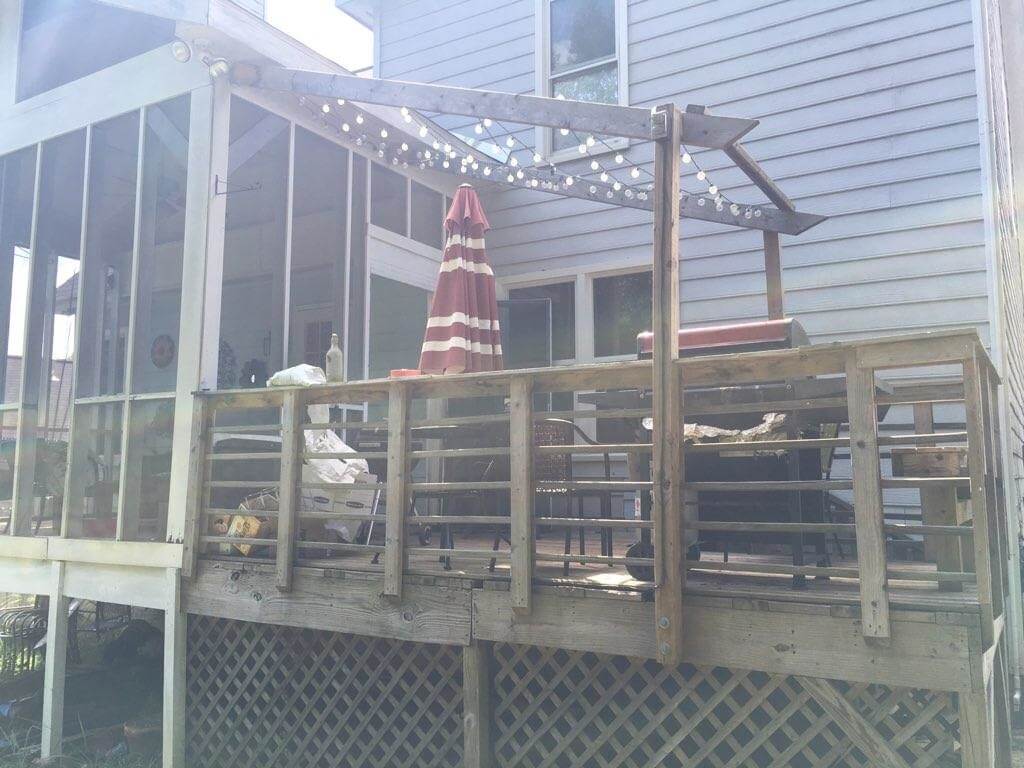 This home was built in the ‘70s and has had multiple owners. The back porch and deck had been built by previous homeowners. In fact, three different sets of homeowners had added onto this home’s outdoor living spaces over the years, and not a single one of them was a professional carpenter.