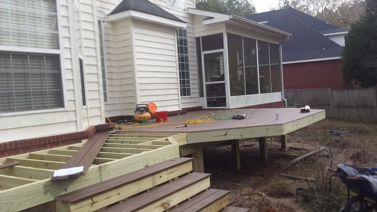 If you’re not familiar with redecking, it means we can replace the boards that make up the deck’s surface without having to replace the substructure. The two advantages to redecking are saving money and saving time. With redecking, your project can be completed that much faster!