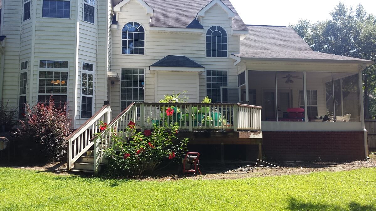 This home’s original deck was made of wood that had aged a good bit, so the clients definitely needed to replace that. Luckily, the substructure supporting the original deck was still in good shape. That meant we were able to redeck instead of having to replace the original deck entirely.