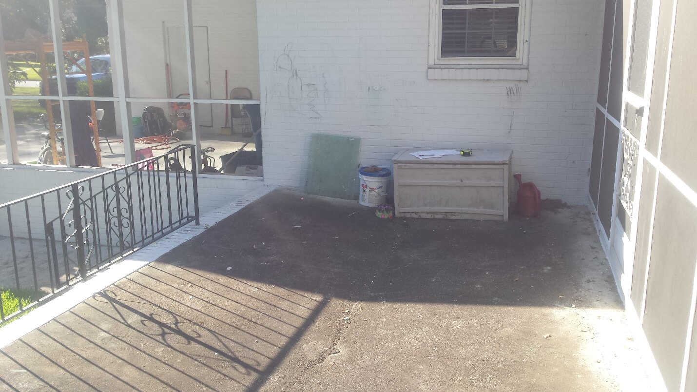 Archadeck of Central Georgia arrived at this home to find a raised poured patio slap, with brick edging and skirting. A functional patio, until it had begun to crack and sink. The patio slab was visibly sunken 2-3” inches in areas, and was set to further fall and break.