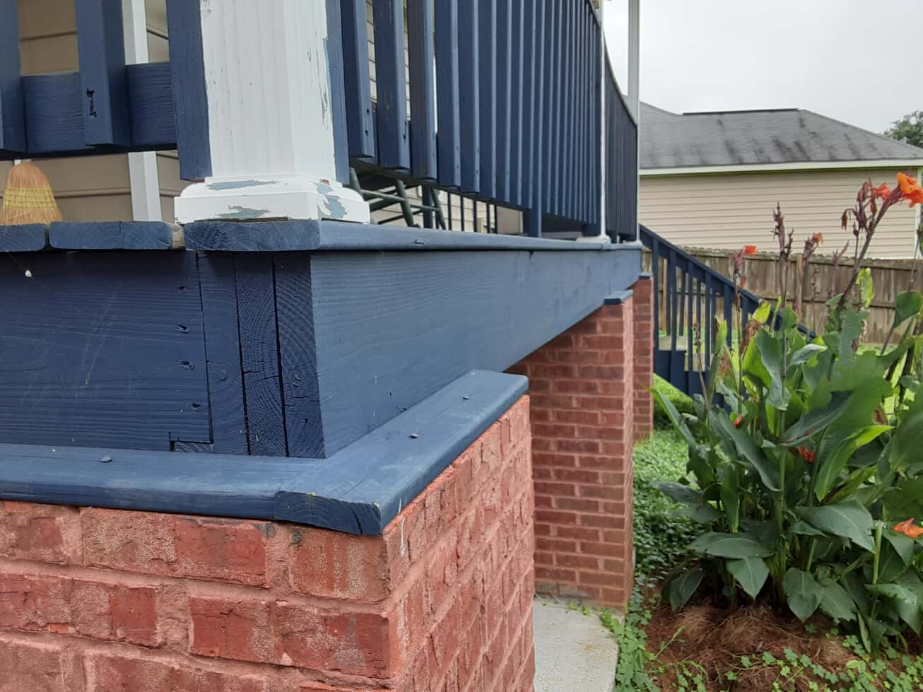 The brick columns supporting the porch floor were not positioned squarely underneath it. The columns were spaced farther apart so the width of the porch didn’t reach all the way across the space defined by the columns. Again, it was a poorly designed porch and just didn’t make sense. Our remedy was to extend the porch floor by 3” on either side to ensure the columns were squarely beneath the porch. Not only do the clients now have more usable space on their screened porch, the porch is more structurally sound than it was before.
