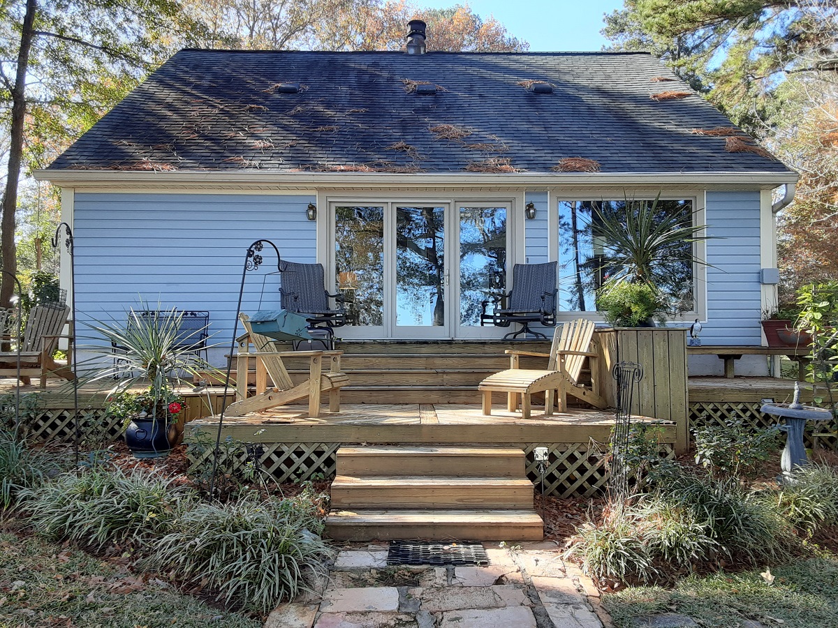 The stairs were also a big issue, as there were a lot of them, originating at the back door of the home. They made navigation to the primary deck area difficult.